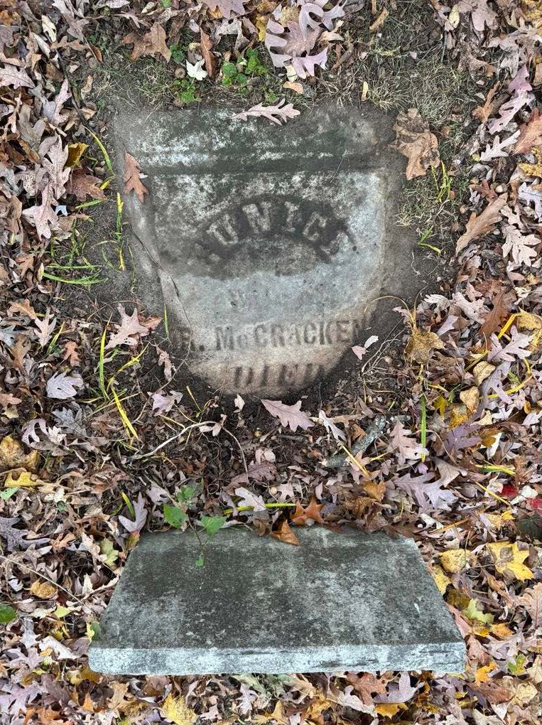 Mrs. McCracken’s tombstone is one of three monuments on the McCracken family lot which need repair.