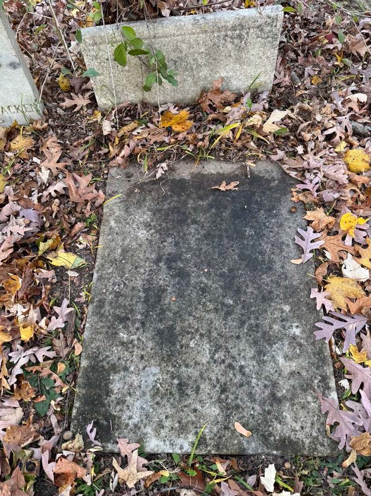 John’s monument is broken and laying prone in front of its base.